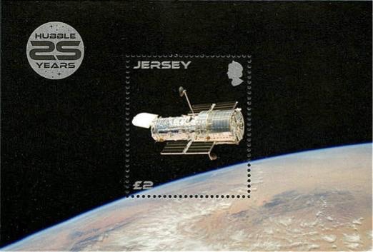 The Hubble Space Telescope turned 25 in April 2015 and Jersey Post celebrated its anniversary with a set of eight stamps bearing Hubble images, plus a mini sheet depicting the telescope in orbit. The subjects are as follows:
