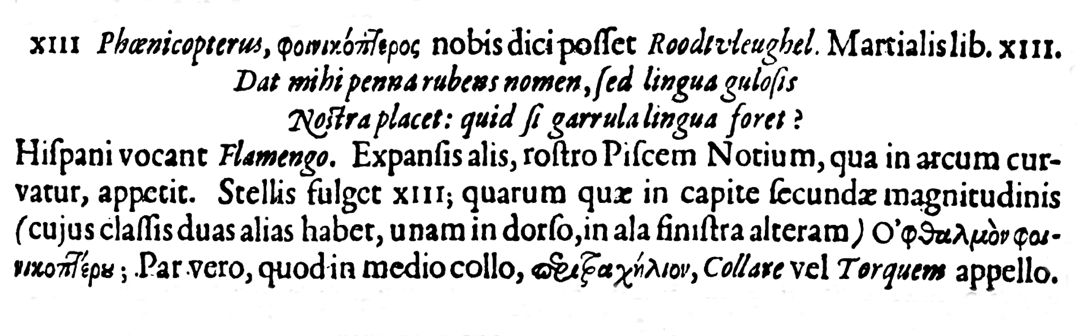 The Dutch historian and geographer Paul Merula (1558–1607) gave Grus the alternative name Phoenicopterus in his Cosmographiae Generalis of 1605.