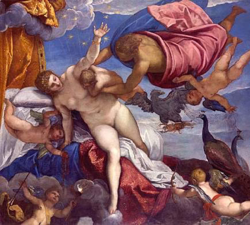 Tintoretto’s painting titled The Origin of the Milky Way illustrates the myth of the baby Heracles being placed at the breast of Hera, with her milk spilling out to form the Milky Way. However, unlike in the traditional version recounted by Eratosthenes, it seems that here it is not Hermes but Zeus himself who is placing the baby at Hera’s breast, for in the background we see his eagle carrying a thunderbolt, as well as the peacocks of Juno. ( Photo © The National Gallery, London.)